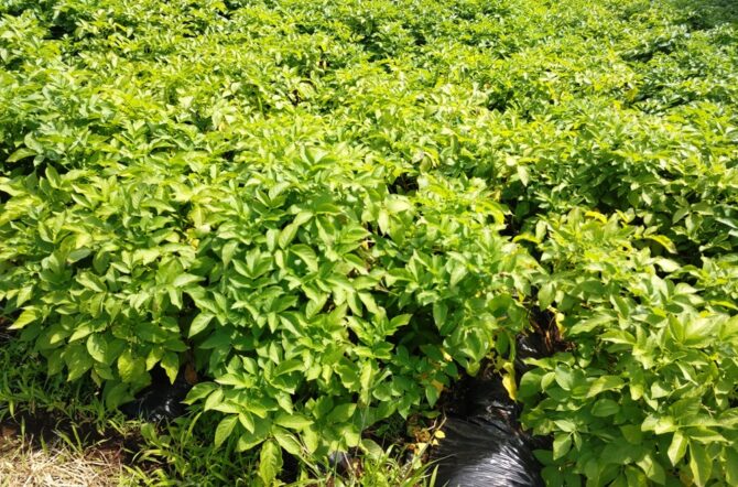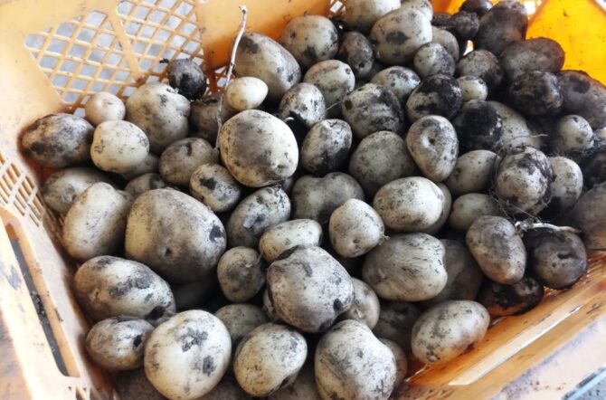 新じゃがいもは葉や茎がまだ青いうちに収穫します
