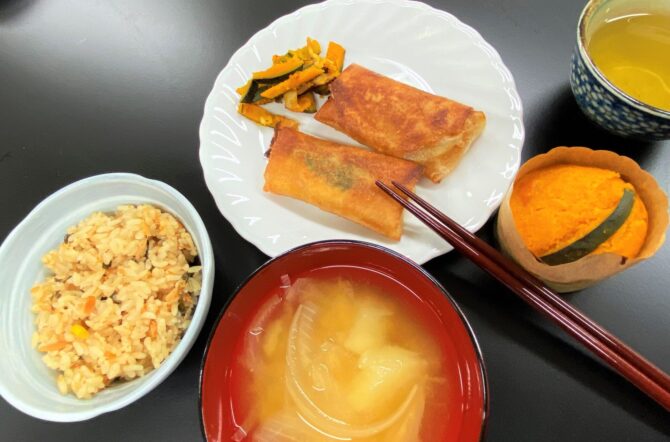 事前に準備しておいた鮭の炊き込みごはんと野菜のみそ汁、かぼちゃのカップケーキ。北海道士別農園ランチといってもいいくらい!千葉で食べられるなんて幸せです。とても楽しい交流となりました。