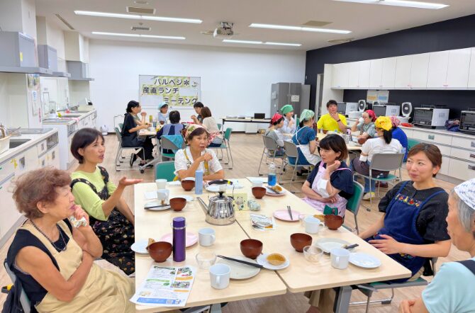 事前に準備しておいた鮭の炊き込みごはんと野菜のみそ汁、かぼちゃのカップケーキ。北海道士別農園ランチといってもいいくらい!千葉で食べられるなんて幸せです。とても楽しい交流となりました。