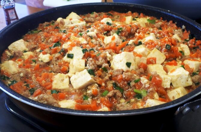 「えっ、人参を麻婆豆腐に入れるの??」と思われた方も…。たんぽぽClubによるデモンストレーションもあり、まるでTVの料理番組のようでした♪