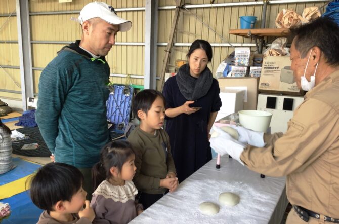 なかなか見ることがないもち練り機も登場し、子どもだけでなく大人も身を乗り出して様子を見ていました。