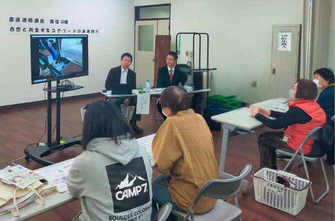 12月12日(木)「産直連続講座 謙信の郷 自然と共生するコア・フードのお米作り」を野田センターで開催しました。講師は「BM自然塾 有限会社 謙信の郷」の金谷武志さんと富永暁さんです。