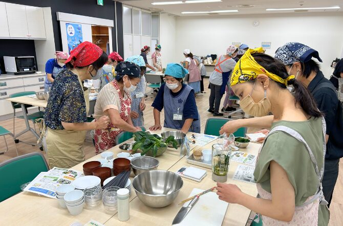今回のメニューは産直交流では定番のものばかり。それぞれのグループに入った産直サポーターと、調理のコツや交流裏話などおしゃべりしながら楽しい調理タイムになりました。
