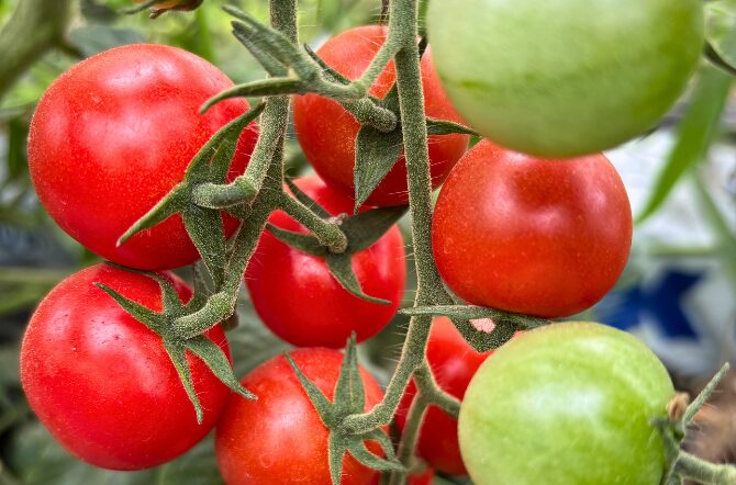 きれいに熟したミニトマトを袋に収めながら、ついでに口の中にもポイポイと…。
