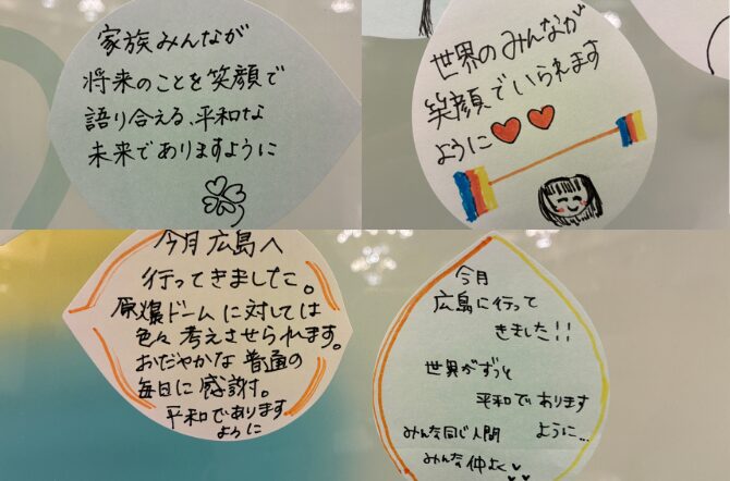 平和の取り組み紹介コーナーでは、平和へのメッセージをお寄せいただき、メッセージツリーとして掲示しました。ご来場者から243枚のメッセージが集まりました。