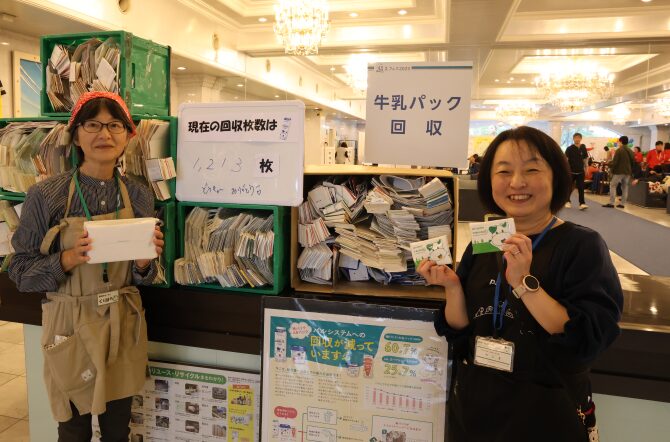 10枚持参で箱無しティッシュ1つと交換します。市販品の牛乳パックも対象となります。