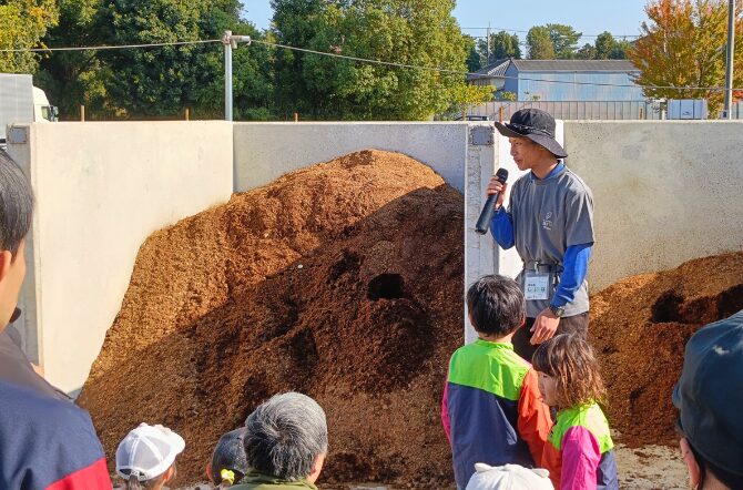 農場長がパルグリーンファームを案内する中で、堆肥についての説明がありました。そのあと直接触って土の温度を確かめます。