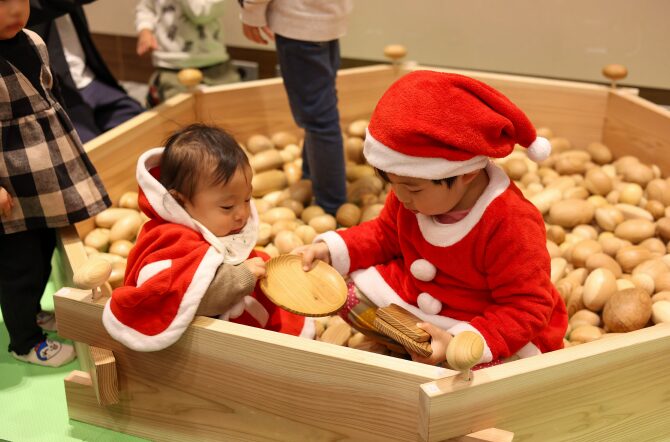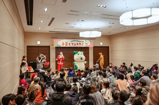 ステージでは、来場者とともにつくる「参加型クリスマスコンサート」を上演し、サンタクロースがお菓子のプレゼントを手渡ししました。また、こんせんくんとのじゃんけん大会は今年も大いに盛り上がりました。