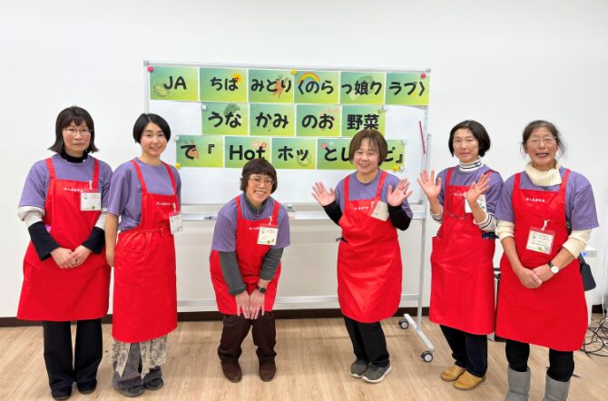 JAちばみどりの海上地区は、冬は暖かく夏は涼しい恵まれた地域です。「海上」と書いて「うなかみ」と読みます。〈のらっ娘クラブ〉は、JAちばみどり海上野菜組合産直部会の女性部です。今回は海上の大地で育ったお野菜をふんだんに使ったレシピを教えてもらいます!野菜の料理のコツなどを聞きながら、楽しく調理実習をしましょう!