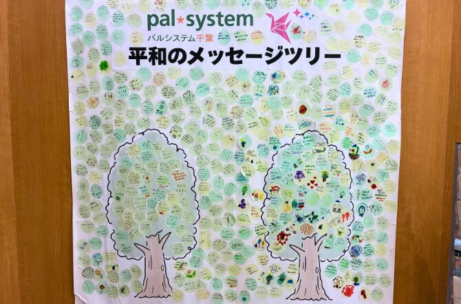 このほか「平和のメッセージ」の記入をSDGsサポーターから呼びかけ、2025年度に開催した商品展示会・子育てフェスタとあわせて394枚のメッセージが集まりました。完成した平和のメッセージツリーは地域活動施設パルひろば☆ちばにて展示をしています。