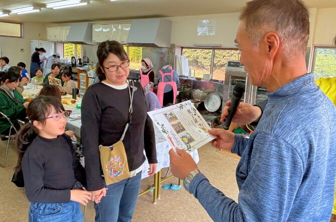 昼食が終わって全4回の参加をねぎらい修了式を行いました。参加者の皆さまから参加した感想をお聞きして、「収穫がたくさんできてうれしかった」「野菜作りの大変さがわかった」など、連続体験企画だからこその学びの多かったことが伝わってきました。