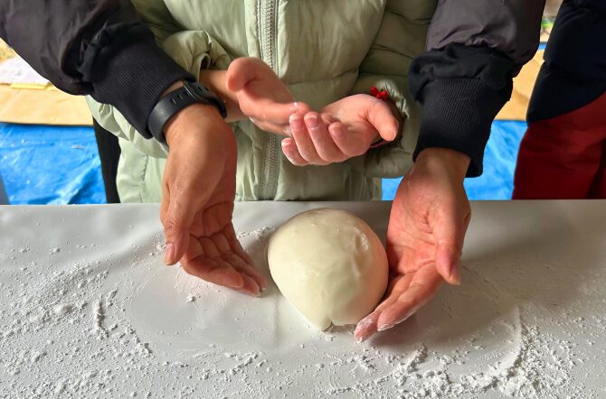 続いて子どもも大人も楽しくお餅つき!自分たちでついたお餅でお供え作りをしました。きれいな丸になるように丁寧に…。お家で飾って良い新年を迎えてくれてたらうれしいです。