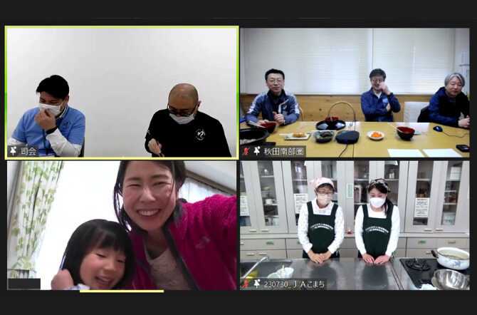 オンライン産直交流~家族で楽しむ「きりたんぽ」と「きりたんぽ鍋」作り~を3月21日に開催しました。秋田の郷土料理と言えば・・・「きりたんぽ」を思い浮かべる方も多いと思いますが、実際に作ったことのある方はそう多くはないのでは?今回の企画では、画面を見ながら秋田南部圏の皆さんときりたんぽ・きりたんぽ鍋を作りました。祝日とあって、画面の向こうにはご家族できりたんぽ作りを楽しむ方も多くいらっしゃいました。