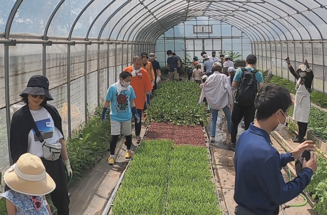 育苗棟の見学。いろいろな野菜の苗がありました。