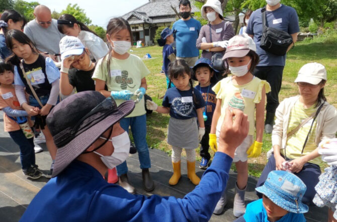 パルグリーンファームでは、作物を有機農法で栽培します。使用している有機肥料のにおいを嗅いでもらったところ、みんな強烈なにおいに鼻をつまむ姿も…。実は、魚かすを用いた有機肥料にはアミノ酸が豊富に含まれています。これが野菜の旨味につながることを椎名農場長が説明していました。
