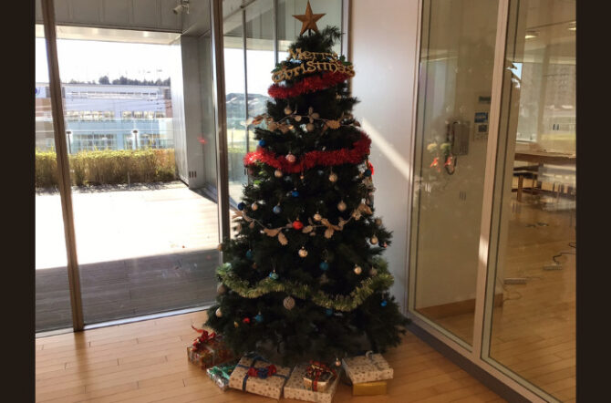 会場(成田市公津の杜コミュニティセンター)のクリスマスツリー