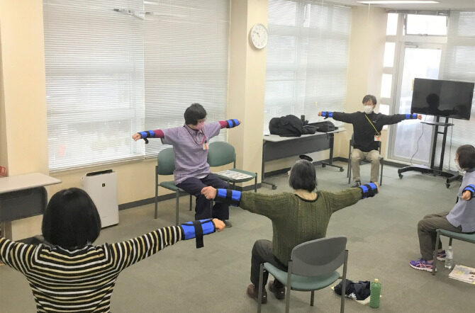 いきいき百歳体操は、ゆっくりとした動きではあるものの必要なところにしっかりと効く内容で、運動不足を自覚している方にはつらい運動です。
