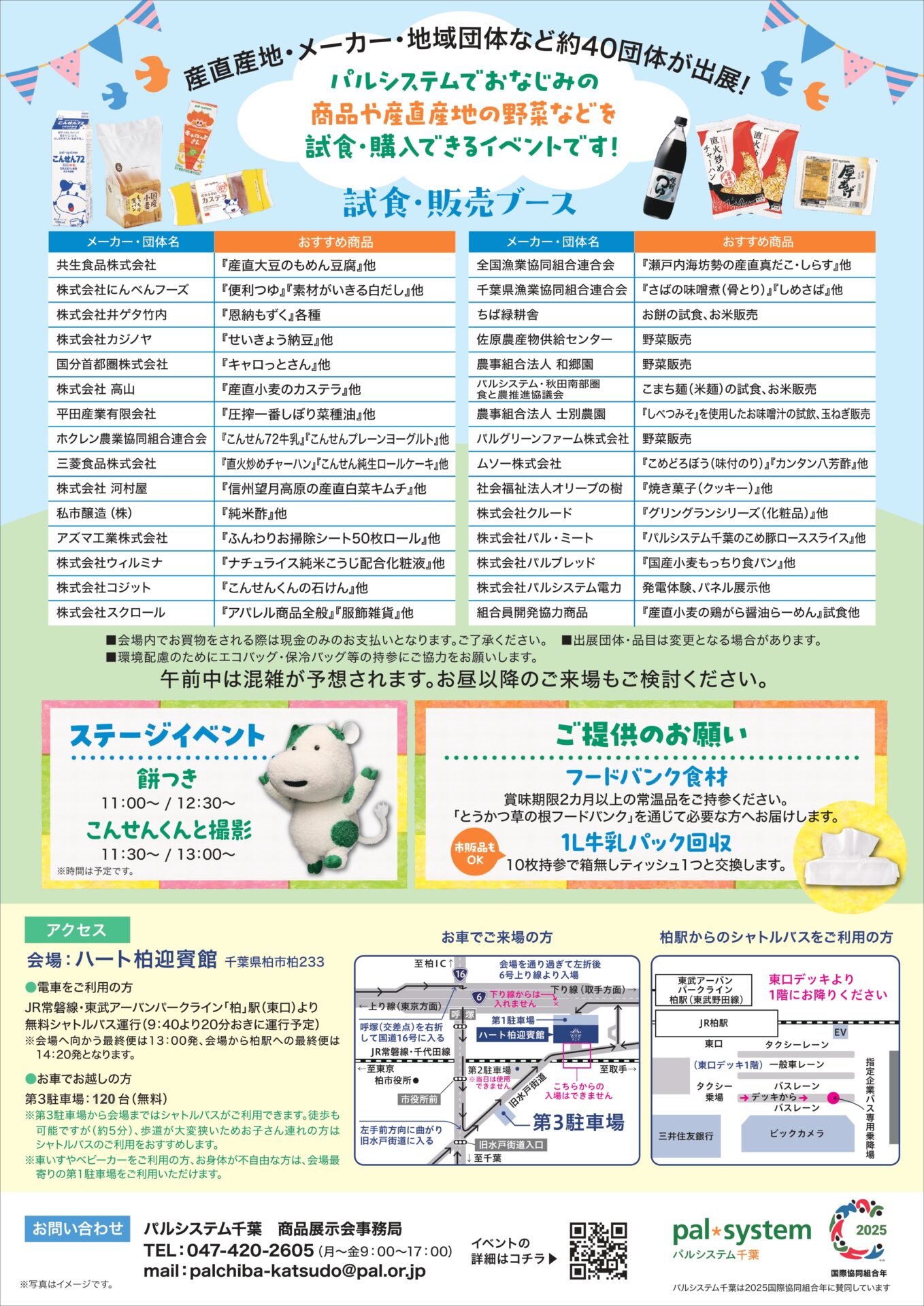TEL:047-420-2605 メール palchiba-katsudo@pal.or.jp パルシステム千葉商品展示会事務局 |