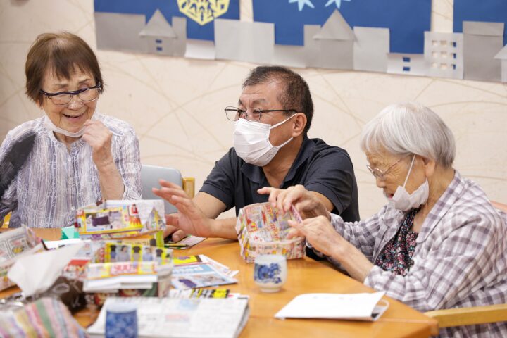 活動の中で作業だけに没頭するのではなく「会話をする」「笑い合う」「夢中になれることをする」の環境づくりを大切にしており、居心地の良さがデイサービスにじいろぱる松戸六実の特徴です。ご利用者それぞれのできることを見極め、朝の準備から帰りのお掃除までスタッフといっしょに行いながら、役割をもっていただくことで日常的な生活リズムをつくっていきます。