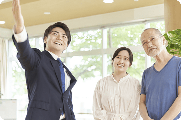 担当者がお会いして、入居に向けた具体的なご案内を行い、入居者様、ご家族の不安・不明点の解消に向け丁寧にご説明いたします。またご本人様の生活歴や大切にしていること、病歴や心身の状態等、安心して暮らし続けて頂くための聞き取りを行います。