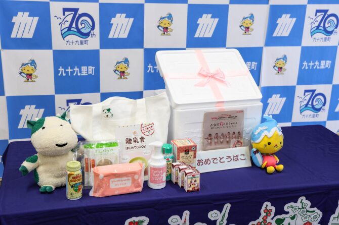 協定に基づき母子手帳交付時に案内する「おめでとうばこ」