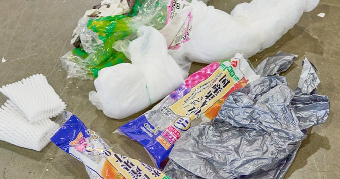 パンの包材は回収していませんが、パン等をまとめている「商品まとめ袋」は資源プラスチックとして回収しています。