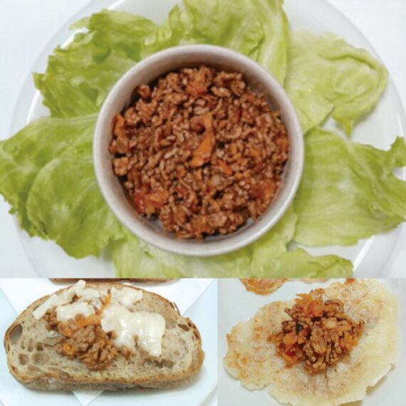 薄くスライスしたバゲットにのせ、上にシュレッドチーズをかけ、オーブンで焼く。 - レタスのせ