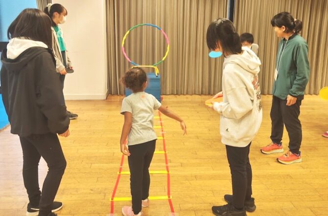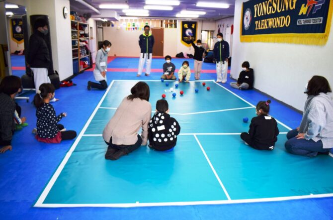 今年度は船橋市市民協働課からのお声がけを受け、市民団体「はぐくみハグミ―」さんといっしょに「インクルーシブ大運動会」を開催しました。このイベントは障がいのあるなしに関係なく楽しむことができ、当日は多くの子どもたちが「ボッチャ」「テコンドー」「モルック」「フライングディスク」というパラスポーツに夢中になりました。