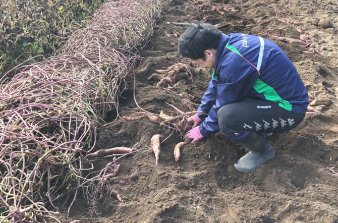 一部に猛暑の影響が残ってはいるものの、すでに「さつまいも」の出荷が始まり、時折パルシステム千葉の本部からも職員が支援に駆けつけるなど、おひさまと競走しながら収穫に追われています。