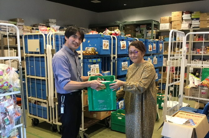 フードバンクでは、多種多様な食品の中からご家庭ごとにあった食品をお届けしています。こうした選別作業をしやすくするために、配送センターに集められた食品は賞味期限ごとに仕分けしてからフードバンクにお渡ししています。