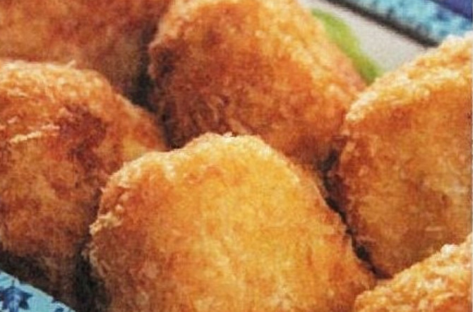 ふかしたじゃがいもを刻み、炒めた玉ねぎと人参を混ぜて、 しょうゆ・砂糖・塩こしょうで味付けして、揚げます。甘じょっぱくて西田家では大好評です。 -