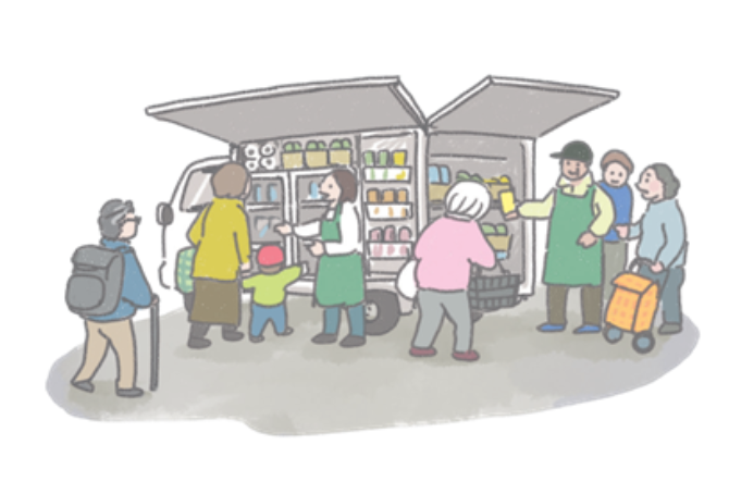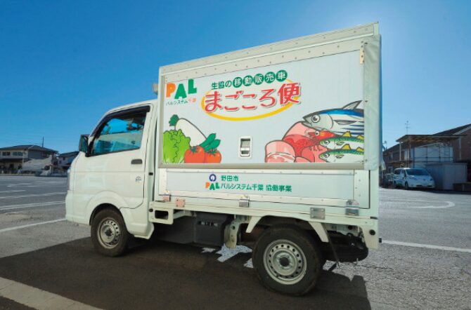 野田市との協働事業で、野田市内を週6日巡回し、のだ中根店で取り扱っている商品を車両販売しています。