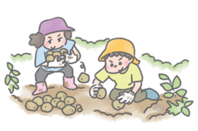 ハウス栽培の葉物や、畑で採れるいも類などの収穫イベントは大人気! また、職員研修の場としての役割も担い、取り組みへの理解を深めています。