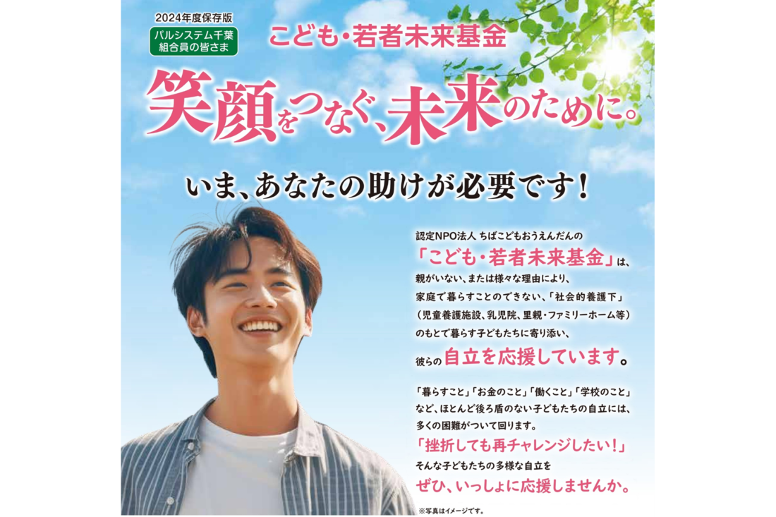 生活協同組合パルシステム千葉(本部:千葉県船橋市本町、理事長:髙橋由美子)は5月6日(月)から、保護者と離れ児童養護施設などで育った子どもたちの自立を支援する「こども・若者未来基金」への募金を利用者に呼びかけます。県内3生協が2017年から連携し、これまでに6,700万円を超える募金が、のべ121人の子どもたちとその自立を見守る伴走者の活動を応援しています。