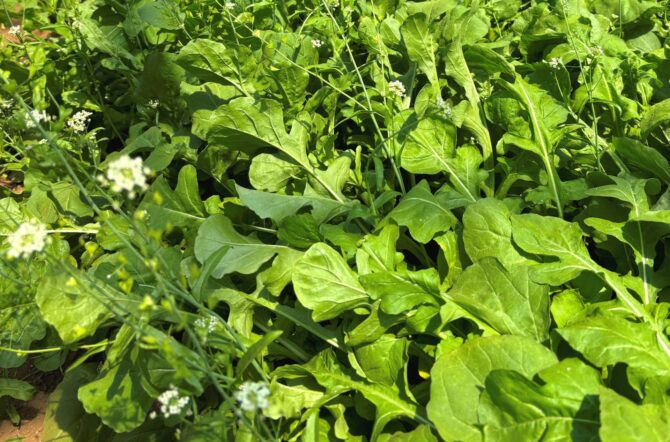 除草剤を使用しない畑に紛れ込もうとするナズナ