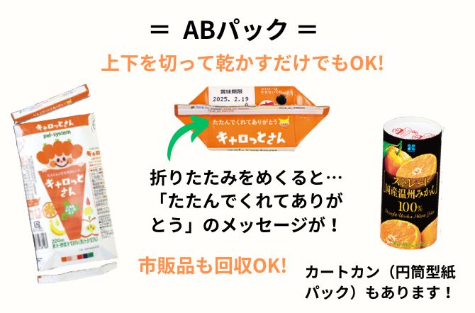 ※ABパックは、豆乳やジュースなどの 内側が銀色のパックです。