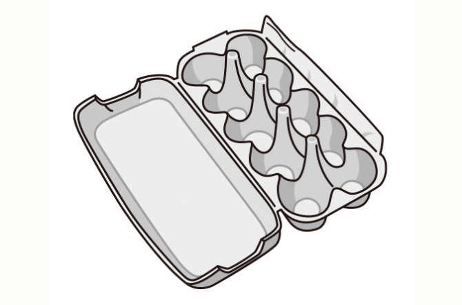 たまごパック…濡れたり、破れていても 大丈夫。汚れた部分は切り取って、その まま通い箱へ。