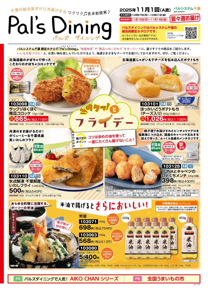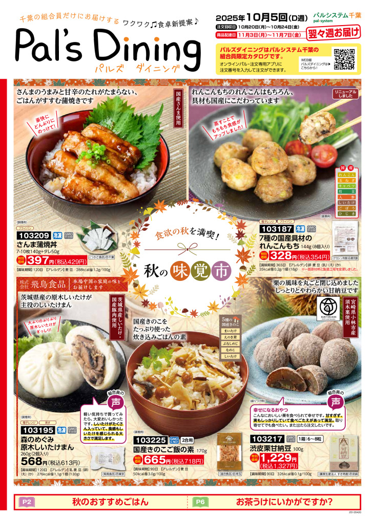 『Pal’s Dining』のカタログをこちらからご覧いただけます。『Pal’s Dining』は毎週月曜日に更新されます。インターネットで注文する場合は、注文番号を入力いただくとご注文できます。