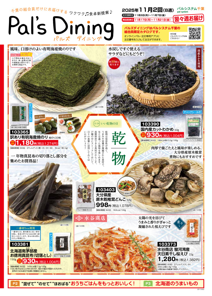 『Pal’s Dining』のカタログをこちらからご覧いただけます。『Pal’s Dining』は毎週月曜日に更新されます。インターネットで注文する場合は、注文番号を入力いただくとご注文できます。