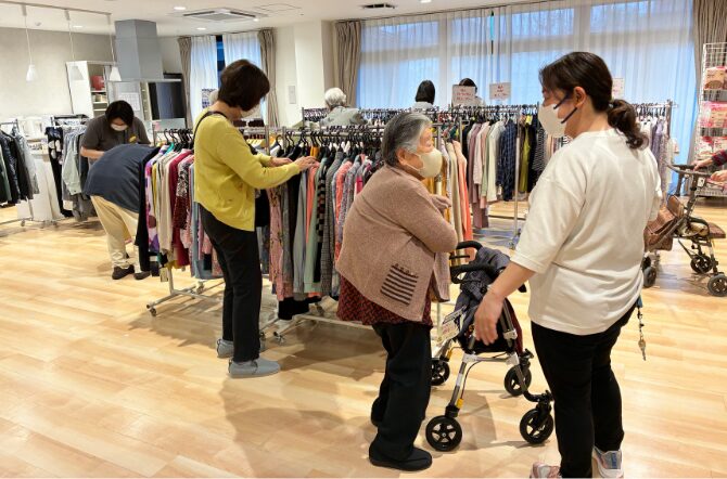 この日、来られていたご家族といっしょに、久々の買い物を楽しむ入居者の姿も印象的でした。