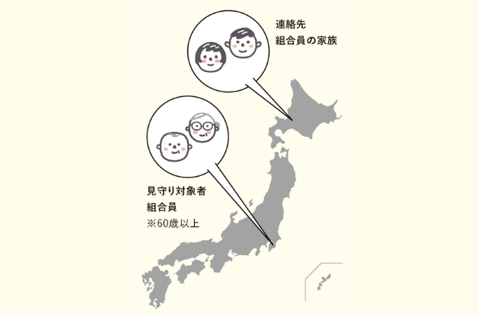 毎週のお届け時に、事前にご依頼のあった基本情報(在宅・不在など)を、ご指定の連絡先へメールでお知らせ。連絡受取者は組合員以外でも大丈夫! 離れて暮らす親族の方に安心を提供します。