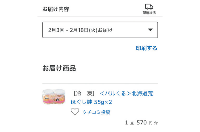 配達翌日13時まで注文や変更ができます。注文履歴やその週に届いた商品を確かめながら翌週お届け分を注文できます。 -