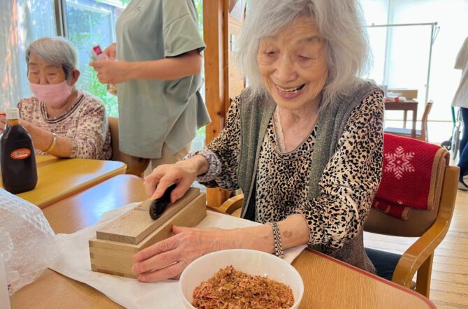 鰹節を削ったり、タネをかき混ぜたり…