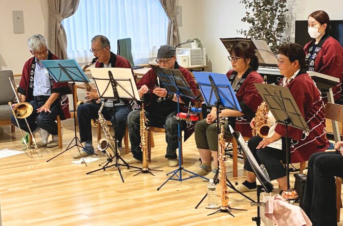 2025/10/06 介護・福祉 にじいろぱる お知らせ 【にじいろぱる松戸六実通信】「敬老の日」をお祝いしました 「にじいろぱる松戸六実」からの活動レポートです。 9月15日、「敬老の日」を入居者の皆さんとお祝いして楽しみました。 吹奏楽ボランティアの方々が来て懐かしい曲を演奏していただき、鑑賞したり、いっしょに歌ったりしました。 皆さん「懐かしい!」「若いころに戻った気分♪」と楽しいひとときを過ごされました。 昼食ではスタッフのお子さんが入居者の皆さん一人ひとりにカステラを手渡しして回りました。とても温かな空気に包まれたランチタイムとなりました。