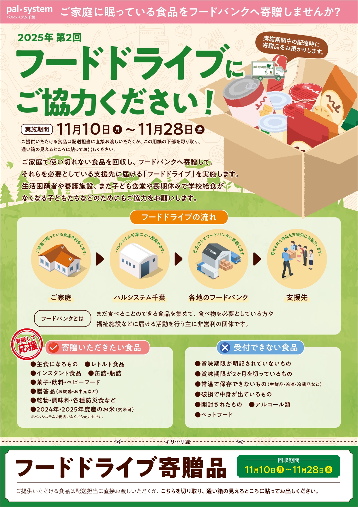 ご家庭で眠っている食品をご提供ください!配達時にお預かりします!《食でアクション》2025年度 第2回フードドライブのお知らせ