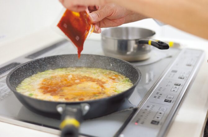 味付けも、 添付のタレを入れれば 終了
