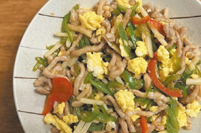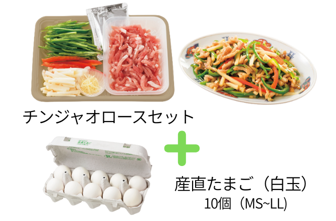 産直豚肉のチンジャオロースセットと卵で