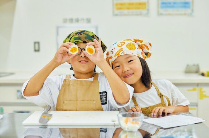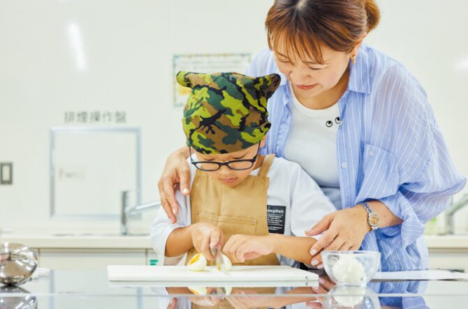 ゆで卵を半分に切る作業は お母さんといっしょに