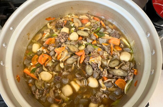 最後は調理担当スタッフが煮込んで……とってもおいしい芋煮が完成しました。