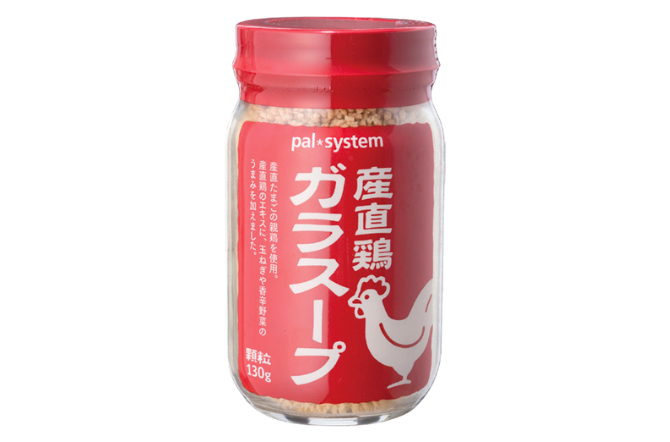 菜の花エッグの親鶏たちは、約2年でその役目を終えます。「大切に育てた親鶏を最後まで大切に活用したい」という生産者の想いで開発されたのが『産直鶏ガラスープ』。丸鶏のままじっくり一晩かけて炊き出したチキンエキスと野菜、最低限の食塩で味をととのえ、素材の風味をしっかり残したお役立ち調味料です。